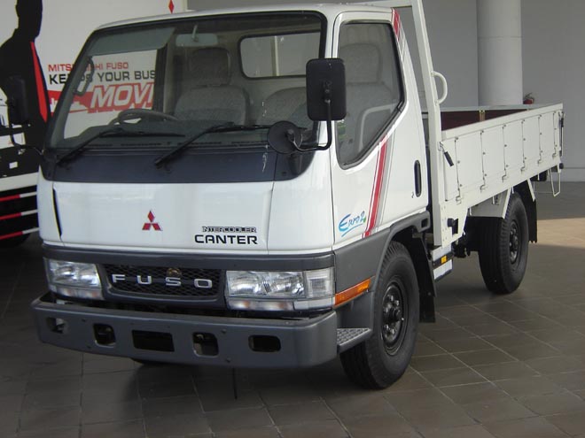 MITSUBISHI FUSO CANTER , a small truck with either 4 or 6 wheels, suitable for a small business. Total load capacity is 4.3-8.4 tons.